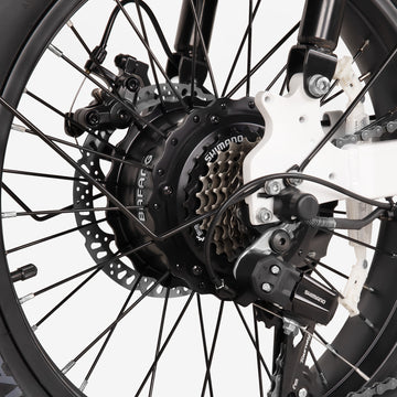 Per quanto riguarda l'esperienza di guida, l'efficiente motore da 500 W eroga una potenza elevata e riesce a superare senza sforzo pendii ripidi. Sulle strade pianeggianti è facile come camminare su un terreno pianeggiante e riesce a superare senza problemi tutti i tipi di condizioni stradali. Grazie al sistema di trasmissione Shimano a 7 velocità, potrai trovare il ritmo di guida più adatto a te, indipendentemente dalle condizioni stradali, e goderti un'esperienza di guida fluida come un pilota professionista.